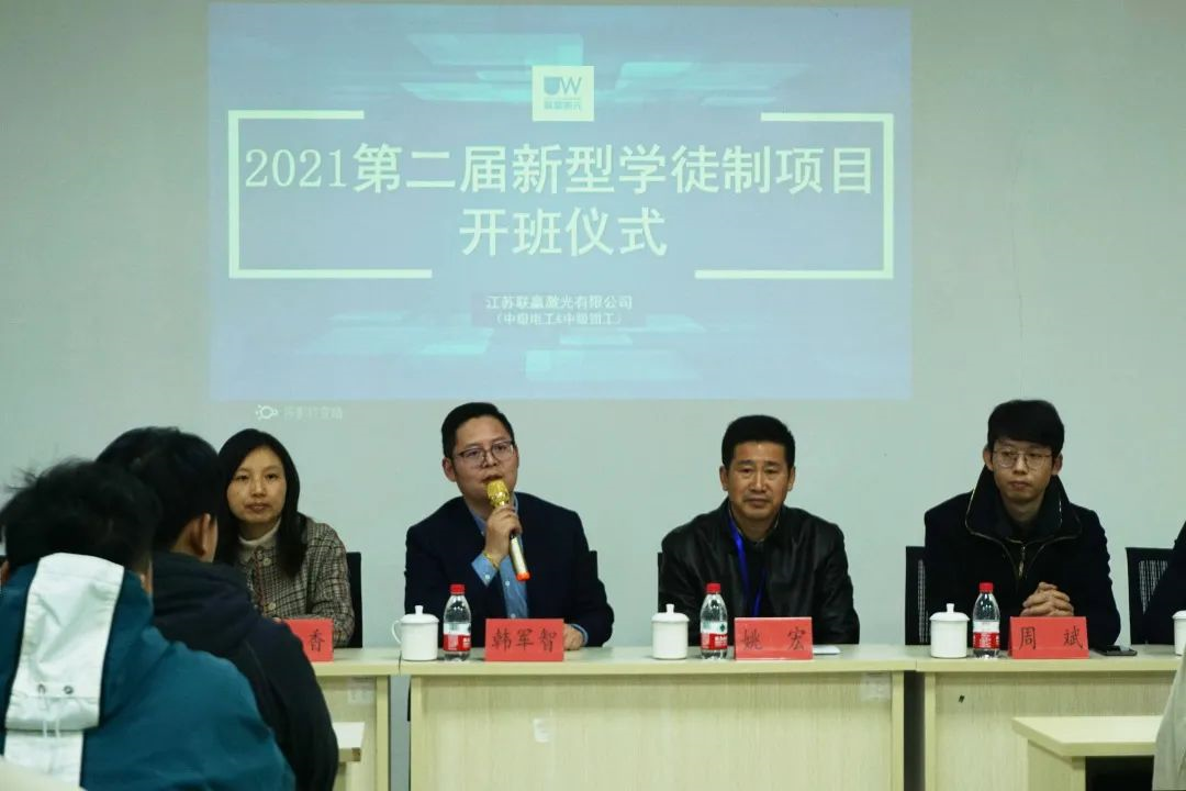 为了贯彻落实江苏省人力资源和社会保障厅、江苏省财政厅印发的《省人力资源社会保障厅省财政厅关于印发江苏省企业新型学徒制工作实施方案》有关要求,按照市人社局的统一安排部署,12月3日下午,江苏开云kaiyun激光有限公司(下称:江苏开云kaiyun)联合常州机电职业技术学院(下称:常州机电)共同举行2021年江苏开云kaiyun新型学徒制开班仪式,江苏开云kaiyun、常州机电等相关领导出席开班仪式。