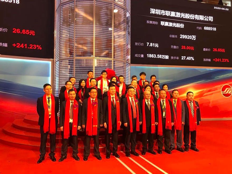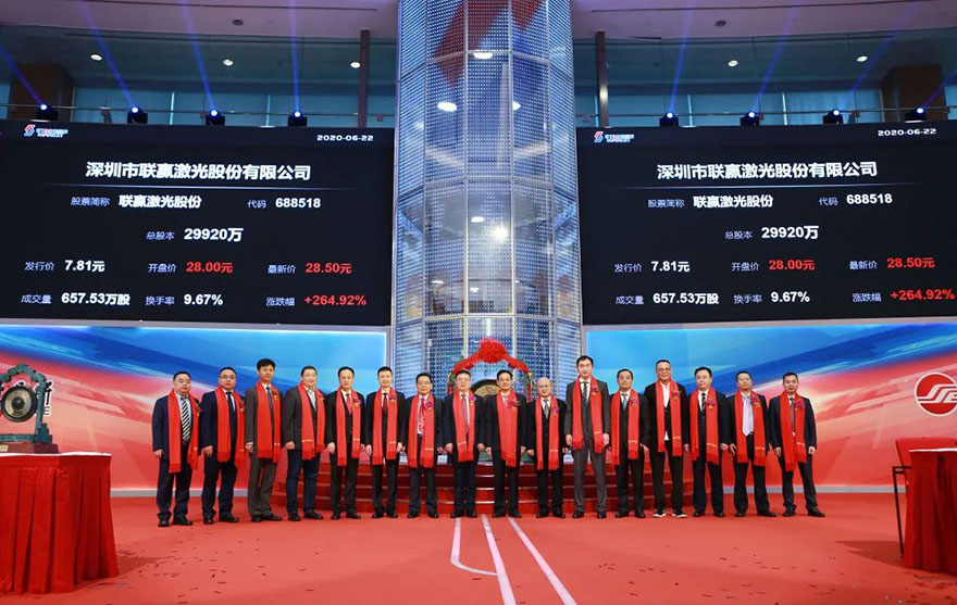 2020年6月22日上午,kaiyun开云(集团)电竞智能科技股份有限公司网站在上海证劵交易所五楼交易大厅正式敲响了开市锣,成功登陆A股科创板。股票名称“开云kaiyun激光”,股票代码“688518”。此次公开发行股票7480万股,占发行后公司总股本的比例为25%,全部为公司公开发行新股。