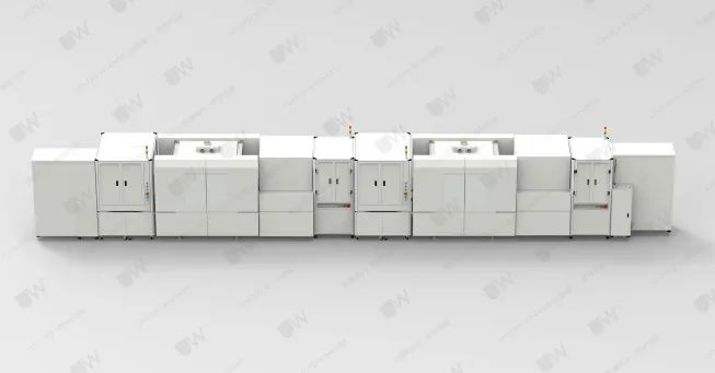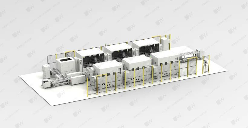 UW Laser fuel cell bipolar plate bonding production line is equipped with automatic loading and unloading system, intelligent glue supply system, visual positioning system, precision bonding system, pressure curing system, intelligent glue control system, automatic glue removal system, air tightness. It has multiple functions such as the intelligent detection system, the repeatability of the fit is ≤ ± 0.05mm, and the detection accuracy of the glue type is ± 0.001mm, which effectively solve the problems of the low efficiency and poor consistency of bonding between the anode plate and the cathode plate of the graphite plate of the fuel cell.