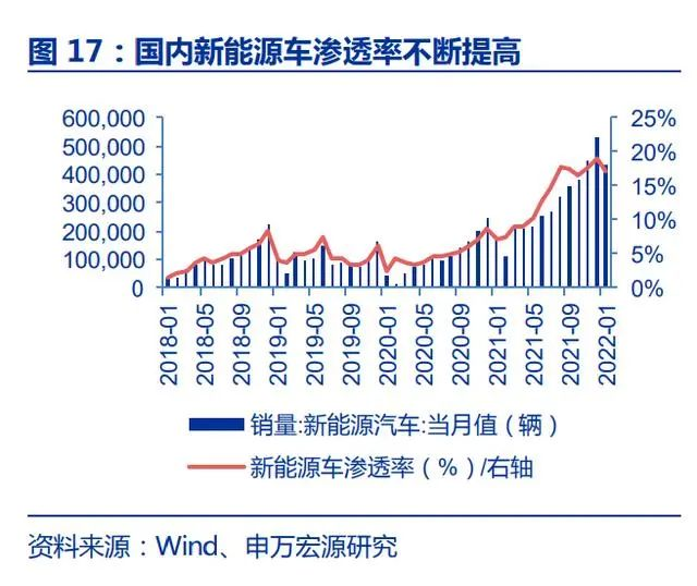 假设二:2021 年我国汽车整体销量达 2624.83 万辆,新能源汽车销量为 350.72 万辆, 渗透率为 13.36%;假设 2025 年新能源汽车渗透率逐步提升至 28%,即可测算每年新能 源汽车销量(每年汽车销量*新能源汽车渗透率);