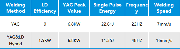The pulse laser welding seam is beautiful in shape, excellent in consistency, high in yield, and achieves a first-time welding rate of ≥99.5%. However, since the maximum power of the YAG pulse laser on the market is 600W, the maximum welding speed is only 7mm/s due to the power limitation. Fiber and continuous hybrid laser welding are more efficient and have a high welding speed of up to 80mm/s but a lower excellent rate than pulse laser welding.