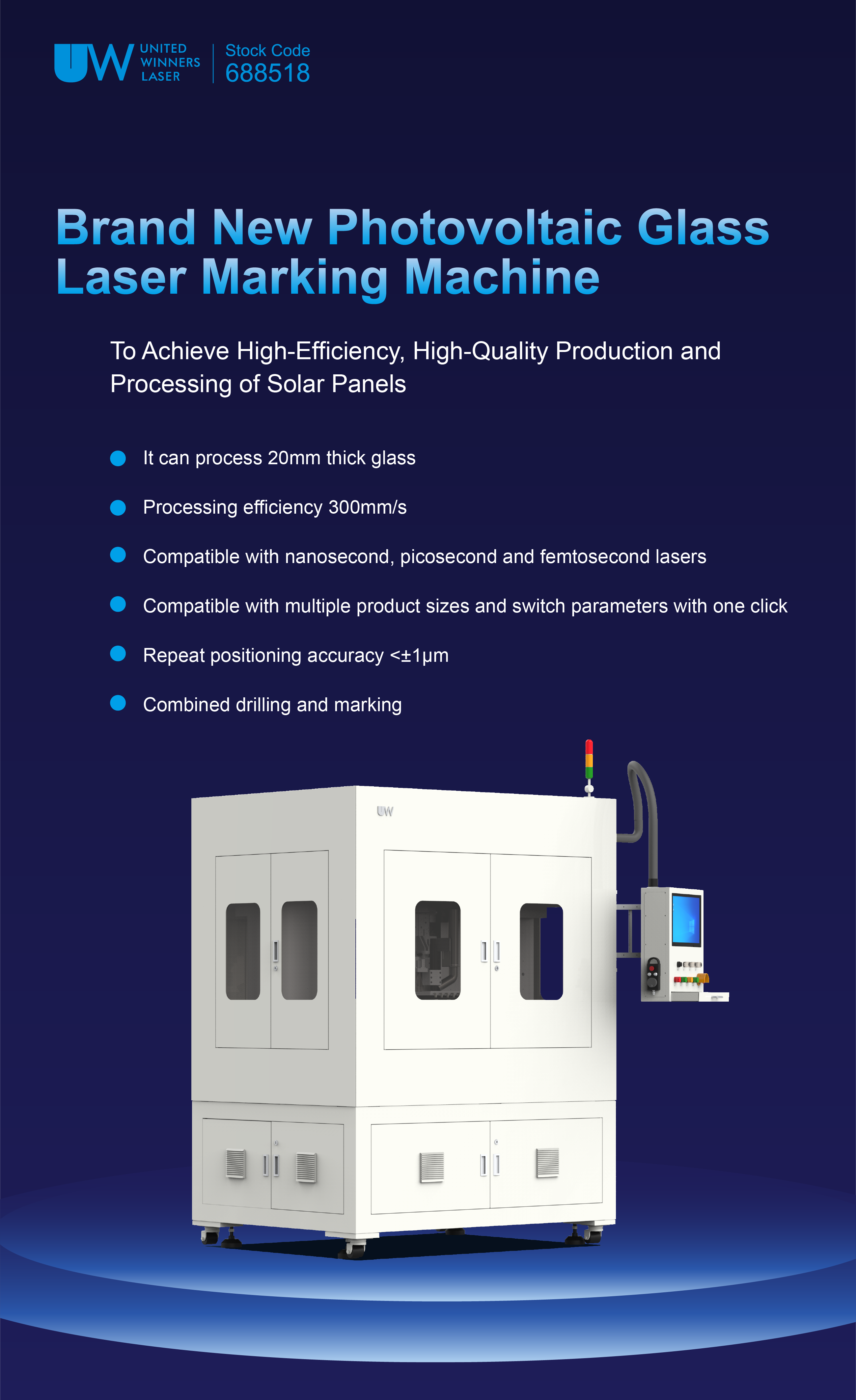 UW The newly launched photovoltaic glass laser scribing machine further simplifies the process, enabling fast, precise, and consistent laser perforation. It eliminates issues such as microcracks and debris detachment, leading to increased production output and reduced defect rates. This technology eliminates the need for additional process steps and chemicals, and it boasts high precision, efficiency, and non-contact capabilities. This contributes to the high-efficiency, high-quality, and low-cost production and processing of solar panels.