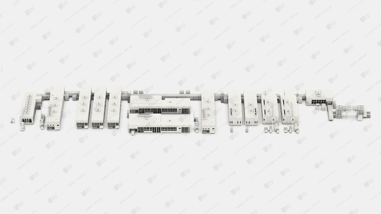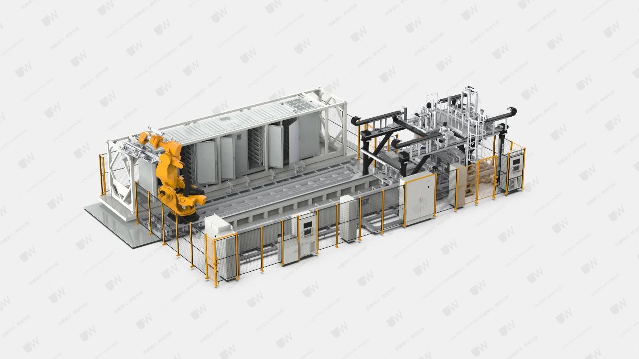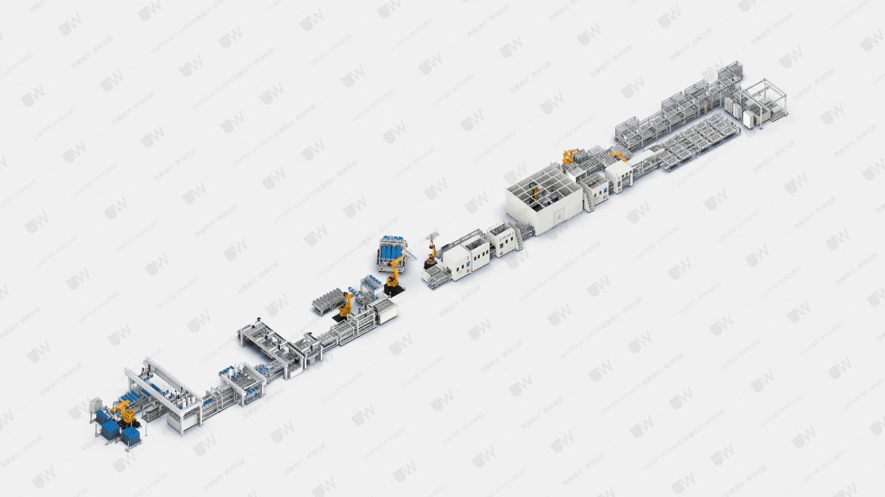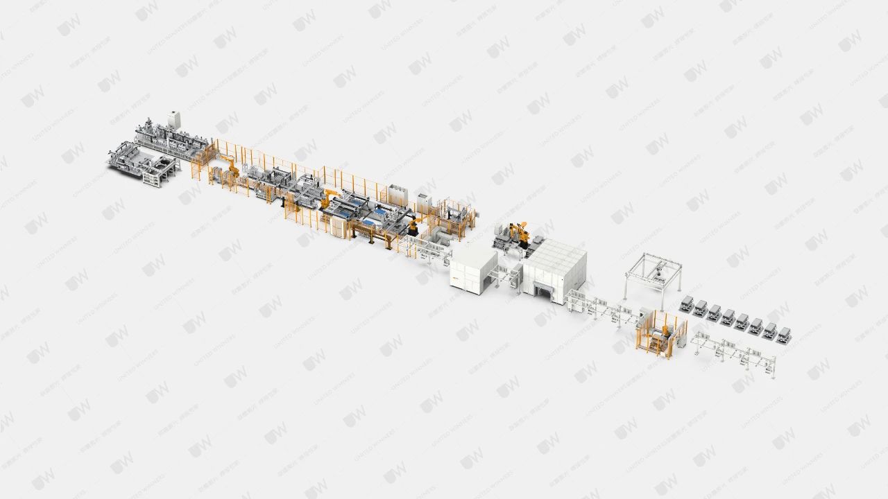 Prismatic cells assembly line includes die cutting equipment, preheating tunnel furnace equipment, hot pressing equipment, X-ray inspection equipment, and tab pre-welding matching equipment. Apart from manual feeding assistance, the operations are fully automated with continuous data recording. Standardized product design and modular production enable compatibility with various cell models ranging from 50AH to 280AH, facilitating rapid changeovers. Additionally, it features low energy consumption and stable operation.