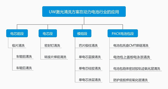开云kaiyun激光基于电池领域的研发及客户优势,早在多年前就开始纵向延伸电池激光清洗业务,攻克高效激光清洗技术。能为电池客户提供稳定高效的极片清洗、密封钉清洗、转接片清洗、巴片极柱清洗、单电芯蓝膜清洗、单电芯硅胶清洗、单电芯涂层清洗、电池包托盘CMT焊缝清洗、电池包上盖板电泳漆清洗、电池包箱体密封胶轨迹氧化层清洗、防护底板焊前氧化层清洗等系列激光清洗方案。