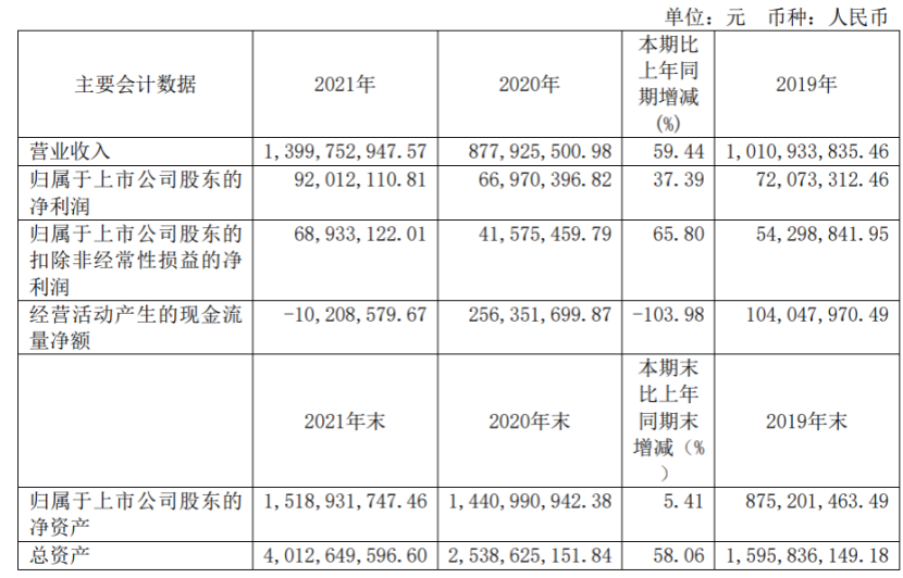 4月18日,kaiyun开云(集团)电竞智能科技股份有限公司网站(以下简称“开云kaiyun激光”)发布2021年年报。报告显示,2021年开云kaiyun激光实现营业收入14.00亿元,同比增长59.44%,归属于上市公司股东的净利润为9201.21万元,同比增长37.39%,每股收益为0.3100元。
