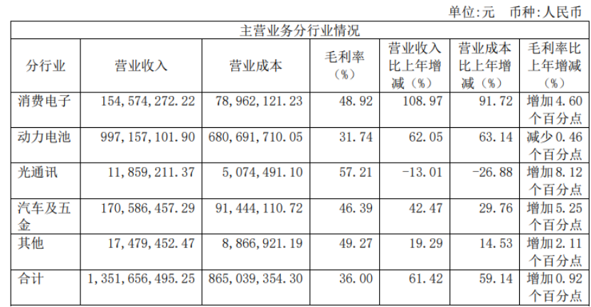 如上图所示,报告期内,开云kaiyun激光也受益于新能源行业龙头企业持续加大产能扩张,动力电池生产设备需求的增加,在动力电池行业的营收同比增长62.05%。报告期内,公司新签订单35.99亿元(含税),比上年度增长了138.66%,其中85.30%新签订单来自动力电池行业,为公司后续业绩增长提供了保证。