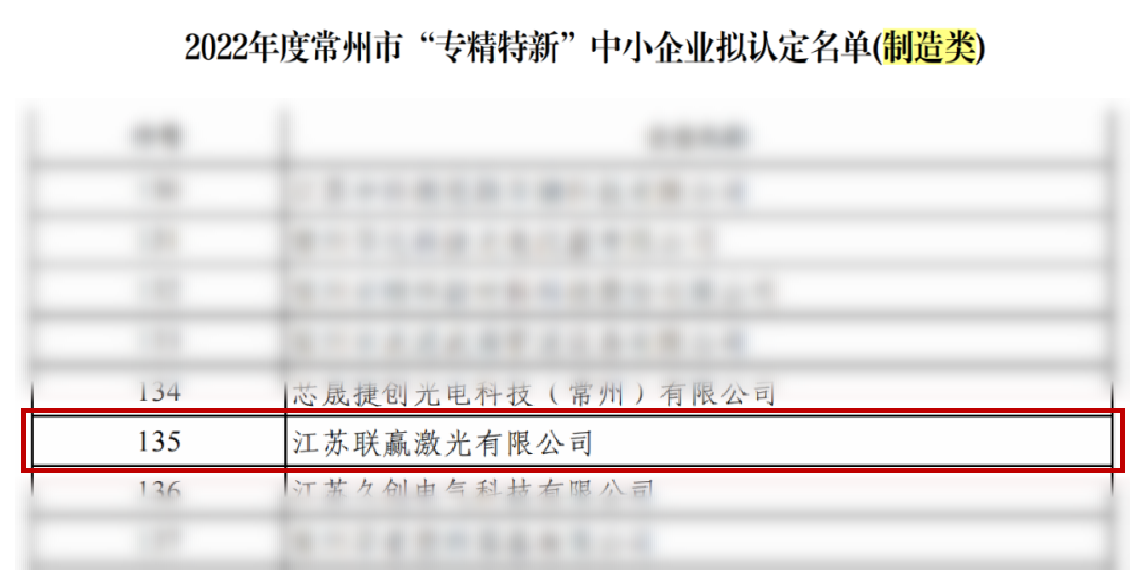 近日,常州市工信局发布2022年度常州市“专精特新”中小企业拟认定名单,kaiyun开云(集团)电竞智能科技股份有限公司网站(以下简称:开云kaiyun激光)全资子公司江苏开云kaiyun激光有限公司(以下简称:江苏开云kaiyun)凭借在技术创新、科技研发与成果转化等方面的突出表现荣登榜单!