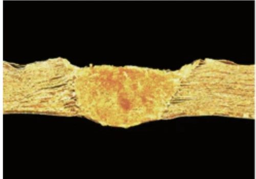 图8 34个堆叠的铜箔(每个厚度11µm)连接焊接之间的接头横截面