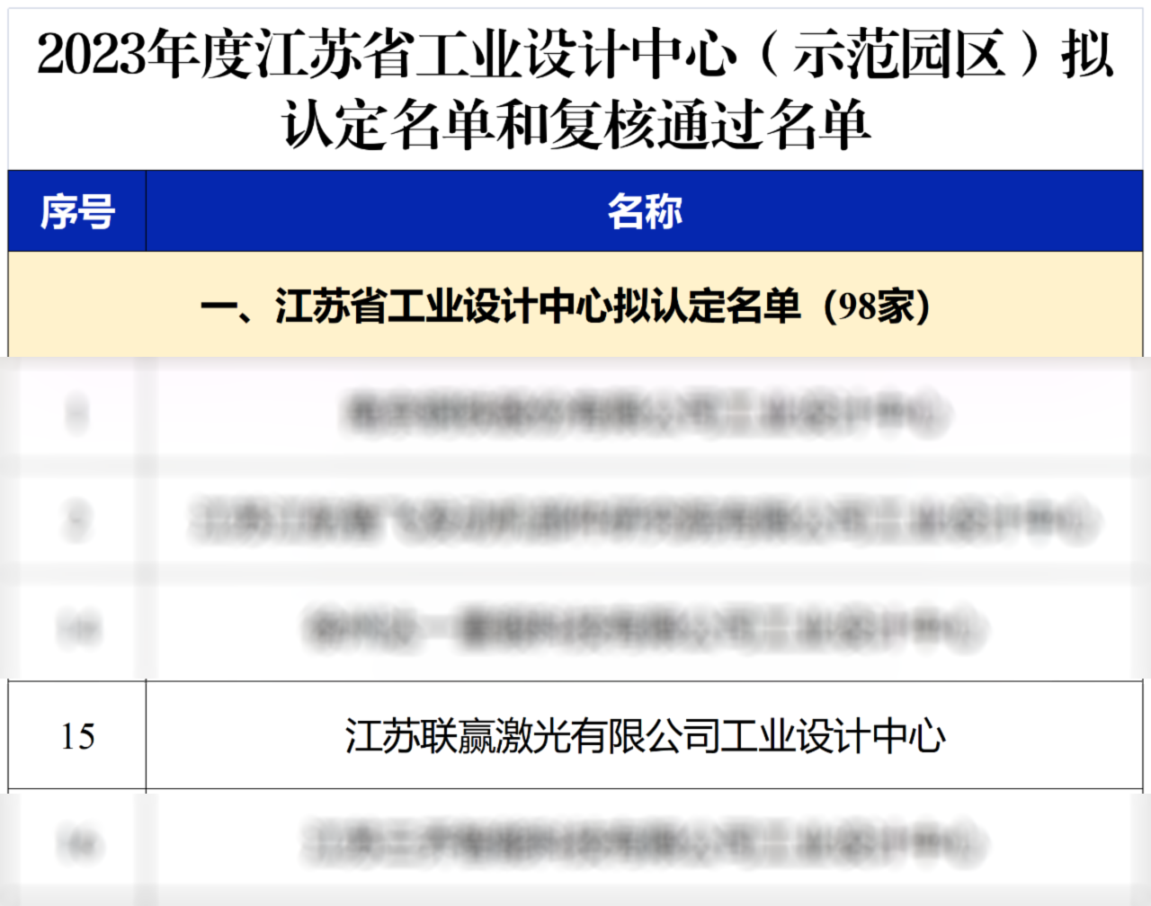 近日,江苏省工信厅公示了2023年度江苏省工业设计中心(示范园区)拟认定和复核通过名单,江苏开云kaiyun激光有限公司工业设计中心凭借完整的工业设计和突出的科技创新能力成功入选。这是开云kaiyun激光获广东省工业设计中心、广东省精密激光焊接装备工程技术研究中心、广东省汽车激光智能焊接装备企业重点实验室认定以来,又一个被认定的省级技术创新平台。
